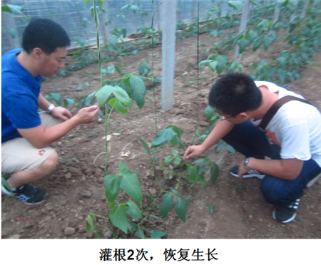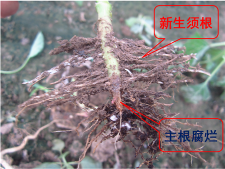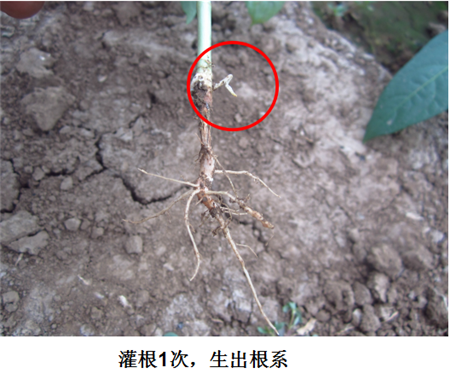 試驗(yàn)結(jié)果:根腐發(fā)病部位上方長出新根,植株恢復(fù)健康生長。