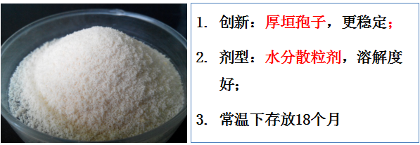 厚垣孢子,抗逆性強(qiáng),貨架期長(zhǎng),效果穩(wěn)定克服了生物農(nóng)藥常溫下不能長(zhǎng)期存放的技術(shù)瓶頸。